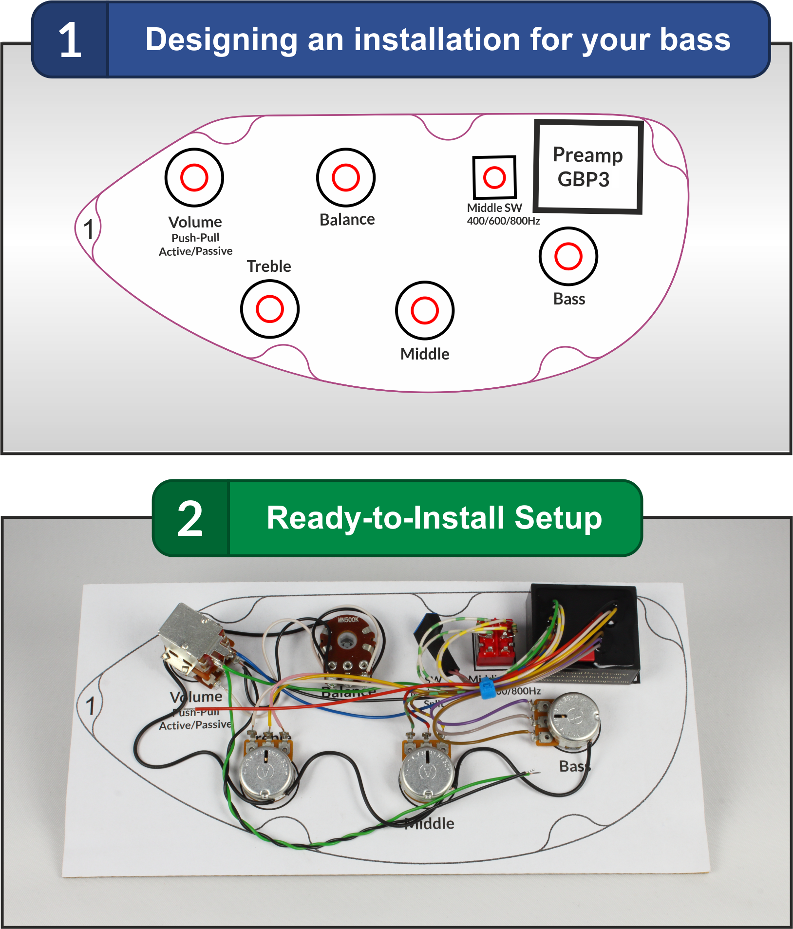 - 2. Preamp with a complete set of potentiometers and switches, along with a detailed wiring diagram in PDF format.